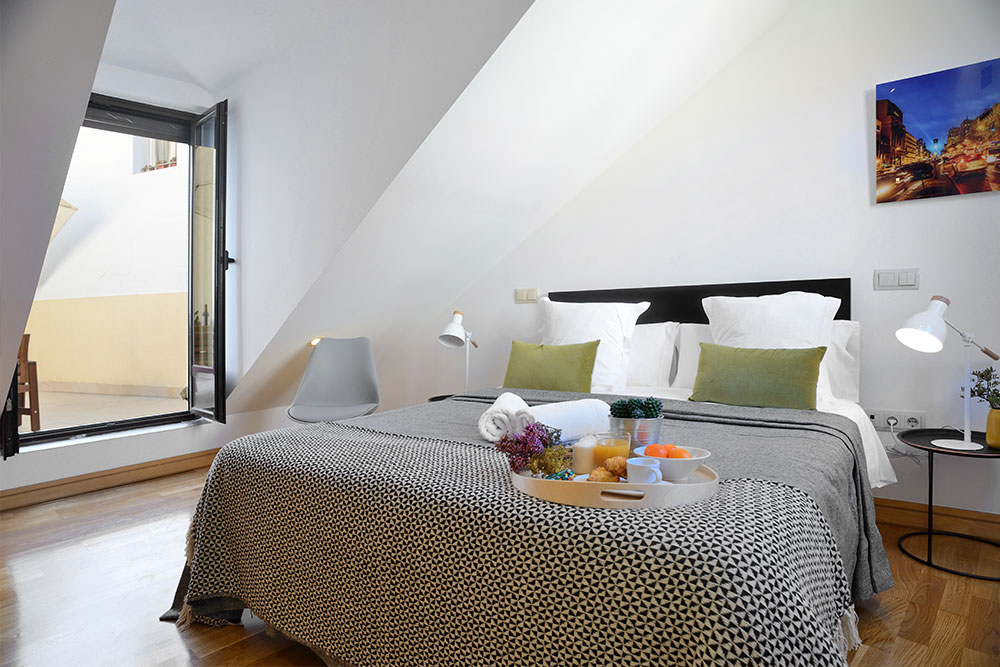 Al tratarse de un edificio con mucho carácter dedicado a apartamentos turísticos en el centro de Madrid, decidimos realizar un diseño que mantuviera su personalidad adecuado a las necesidades actuales.