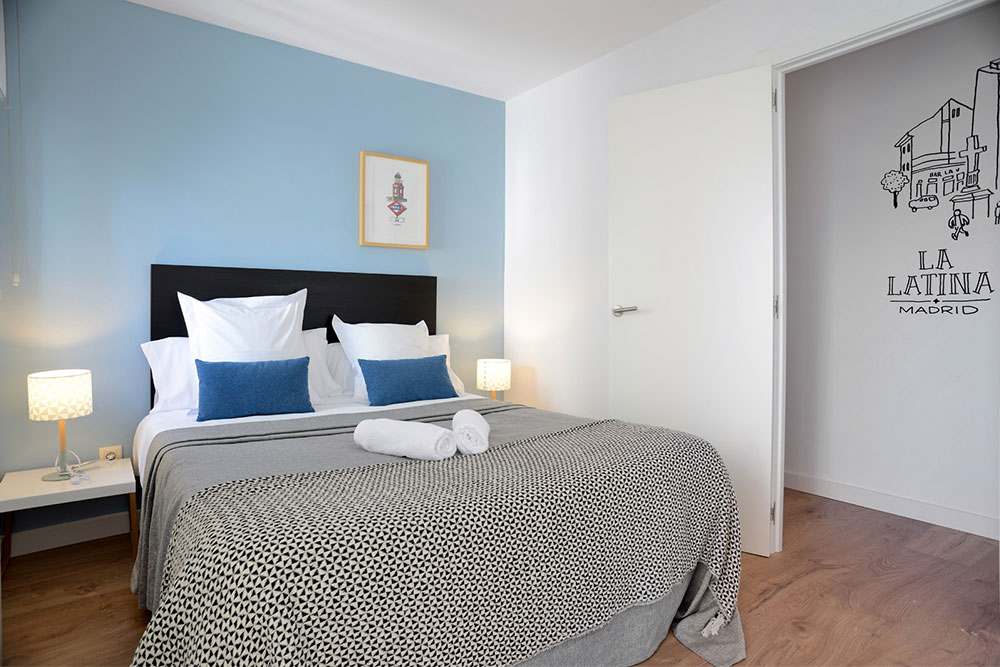 Al acometer este proyecto, en el que todos los apartamentos eran muy luminosos y el color protagonista iba a ser el blanco, decidimos jugar con el color y el diseño gráfico en paredes, creando espacios alegres y escenográficos.